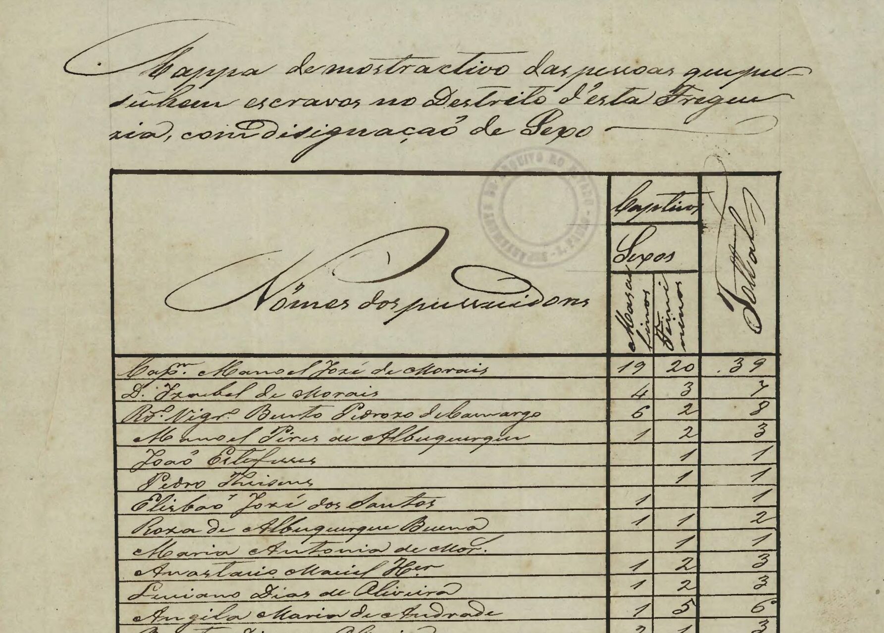Feature image: Lista de proprietários de escravos da fregesia de Itapecerica, 31 de Agosto de 1850, Arquivo Público do Estado de São Paulo, freely translated as: List of slaveholders of Itapecerica parish, August 31st 1850, State of São Paulo Public Archive.